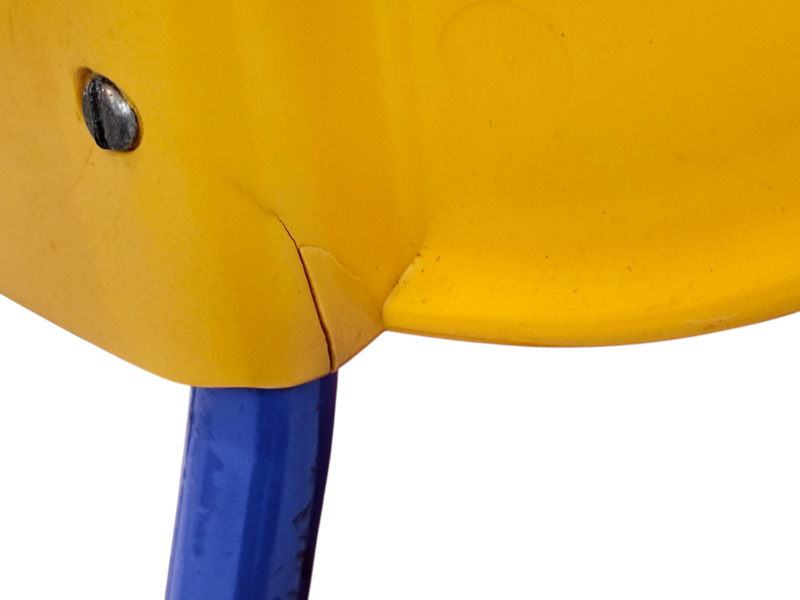 Fraaie design kinderstoel duidelijk geïnspireerd op de Memphis Milano stijl. Ontwerp van Knut en Marianne Hagberg voor Ikea.