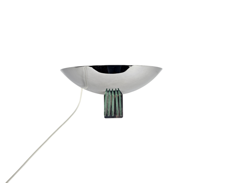Ervaar de tijdloze elegantie van de jaren '70 met deze Lumess uplighter, vervaardigd in Zwitserland. Deze lamp combineert een verfijnde chromen afwerking met een uniek glazen ontwerp, waardoor het een opvallend stuk is in elke ruimte.