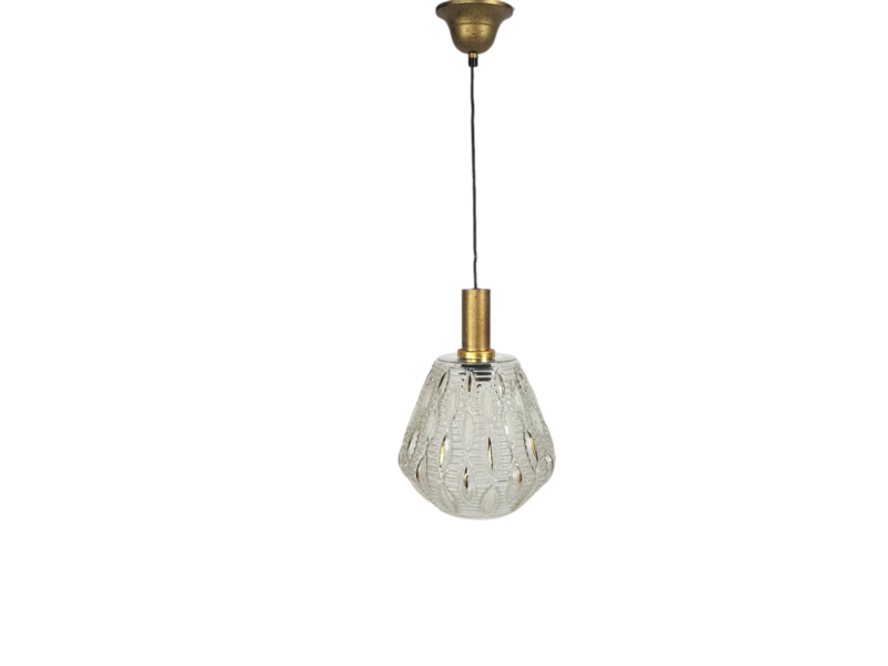 Zeldzame en zware Mid Century glazen hanglamp - transparant glas met vergulde elementen, ontwerp van Rupert Nikoll.