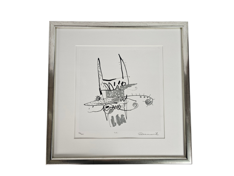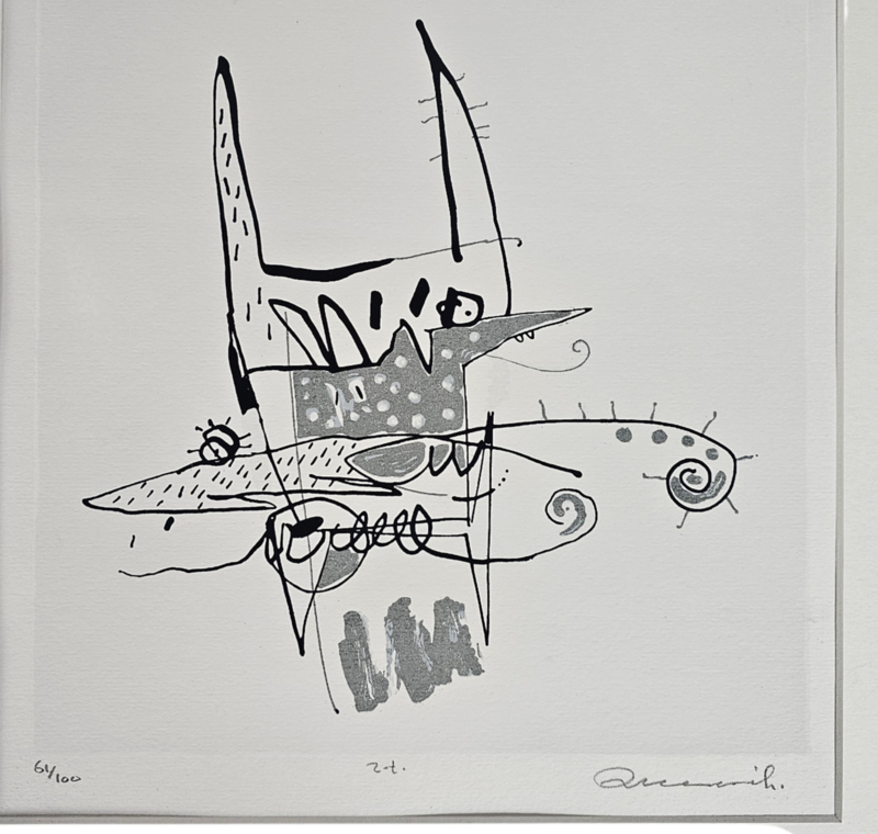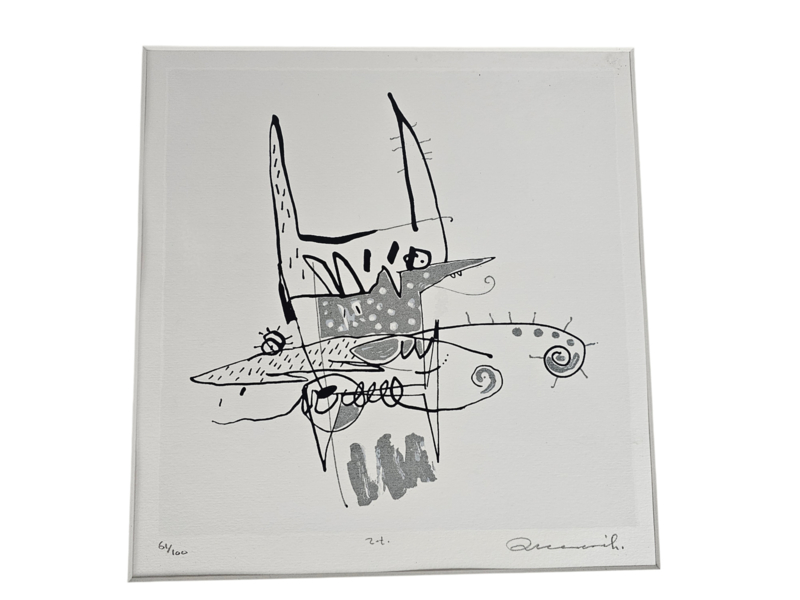 Ontdek dit unieke grafische werk van de Iraaks-Nederlandse kunstenaar Mohammed Quraish. Een gelimiteerde oplage (64/100) met zijn kenmerkende abstracte lijnenspel, geïnspireerd door Mesopotamische symboliek en moderne abstractie.