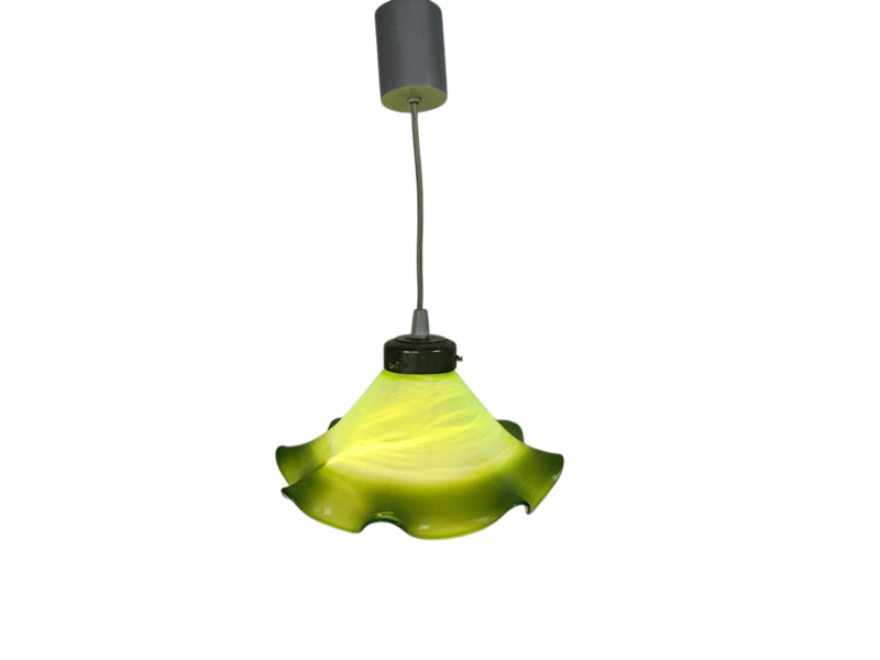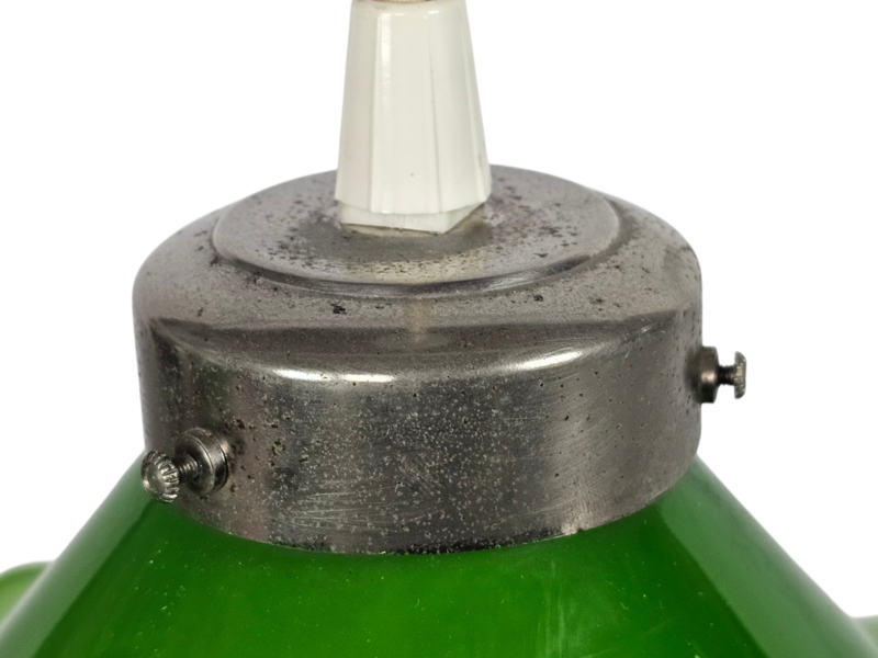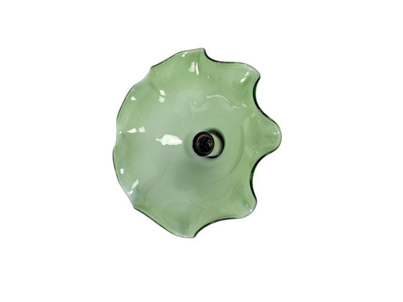 Vervaardigd uit groen opaline glas, met een witte binnenkant voor een betere lichtverspreiding.