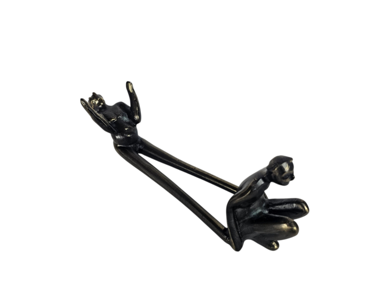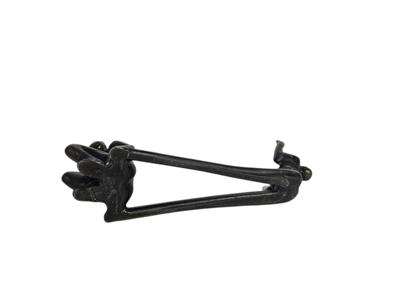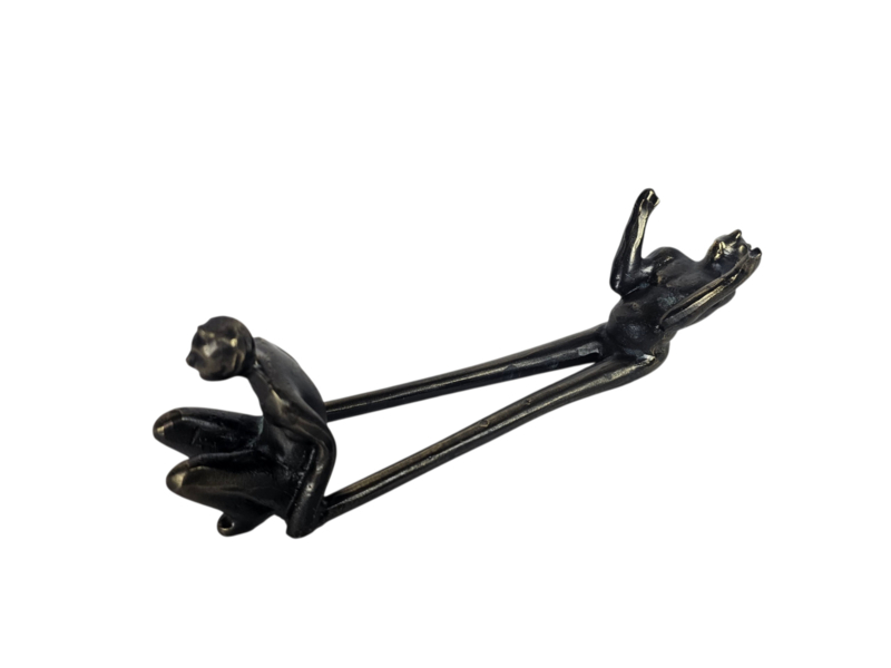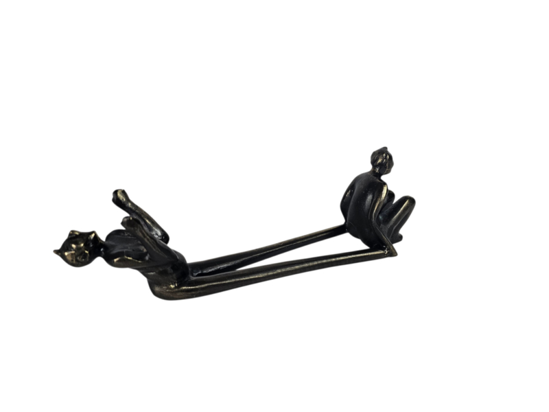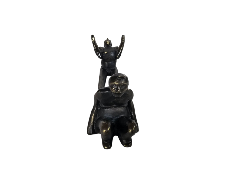 Dit verbronsde sculptuur is een flessenhouder ontworpen door de Nederlandse kunstenares Corry Ammerlaan. Het object is functioneel bedoeld om een wijnfles te dragen, maar functioneert ook als een decoratief kunstwerk zonder fles.