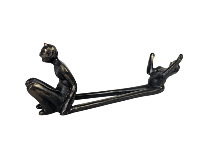 Het is gemaakt van verbronsd metaal, vaak met een zware kwaliteit.