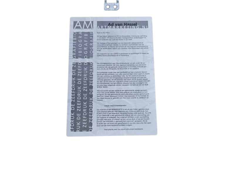 - Kwaliteit en vakmanschap: De zeefdruk is zorgvuldig vervaardigd op hoogwaardig papier en omlijst in een elegante houten lijst.
