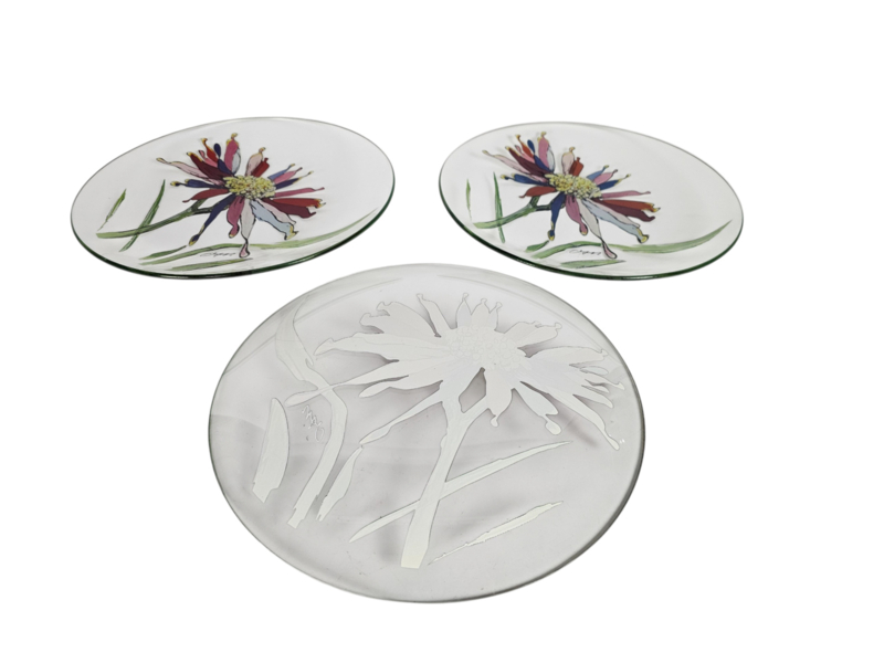 Ontdek de verfijnde schoonheid van deze Artihove glazen prints, ontworpen door de gerenommeerde kunstenaar Corry Ammerlaan van Niekerk. Deze set uit 2000 vangt de essentie van moderne kunst met zijn levendige kleuren en gedetailleerde bloemmotieven, perfect voor het verfraaien van elke ruimte.