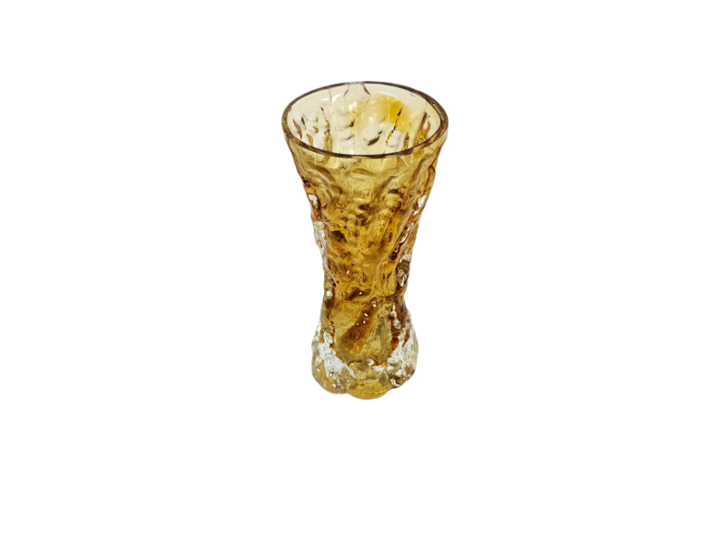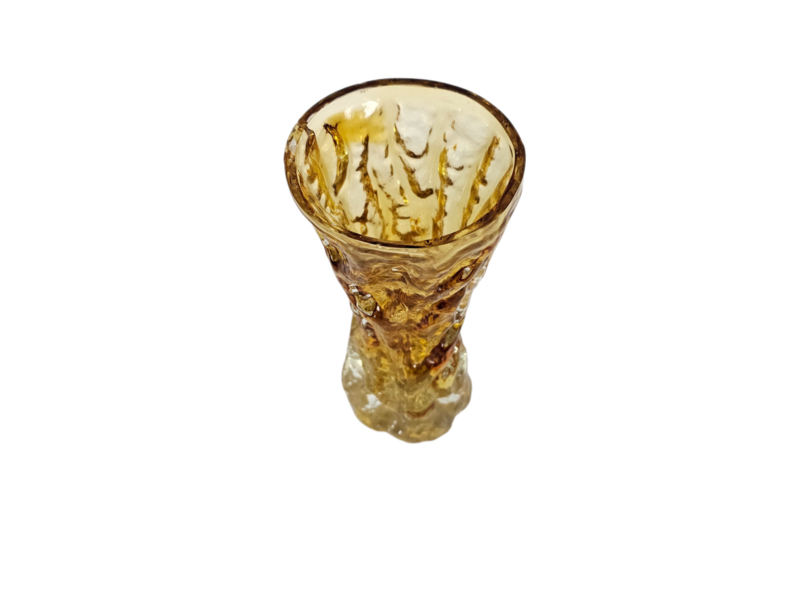 Deze prachtige Ingrid Glashütte vaas uit de jaren '70 is een schitterend voorbeeld van West-Duitse glasblazerij. Met zijn unieke "bark textured" ontwerp, vangt deze vaas de essentie van natuurlijke schoonheid en vakmanschap.