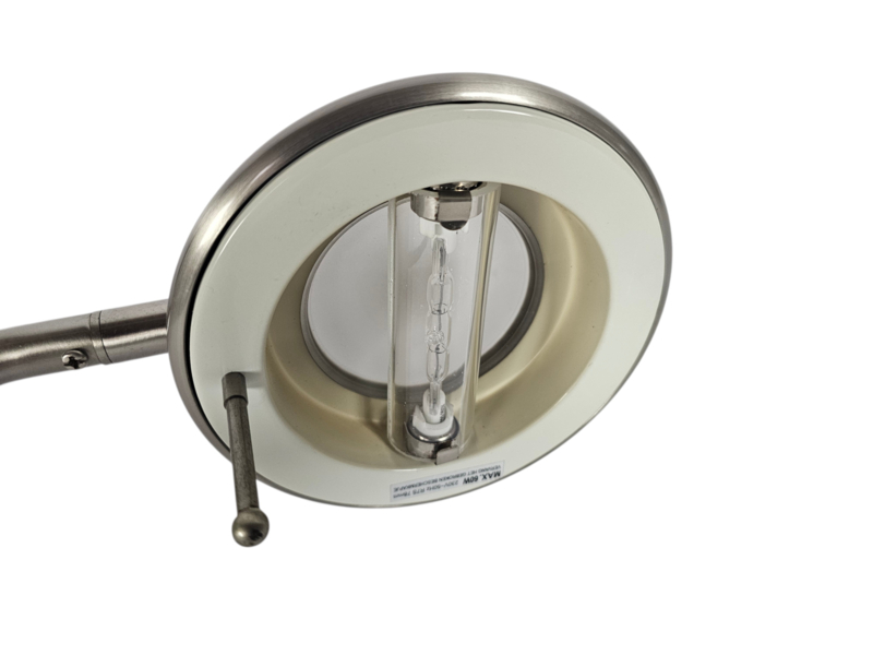 De lampschotels die doorschijnend zijn met matglas, kunnen in verschillende posities gedraaid worden en zijn voorzien van halogeen lampen die dimbaar zijn door een originele externe dimmer.